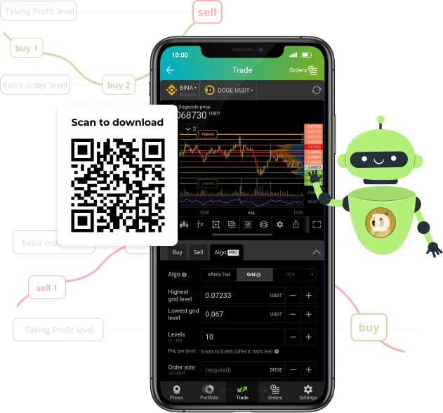 Come to the side of cosmic luck and set up your trendsetting Dogecoin Trading Bot. The DOGE Bot will automate your trading routine and gain more stable profit for 24/7, in an emotionless way, even if you are far from the monitor.